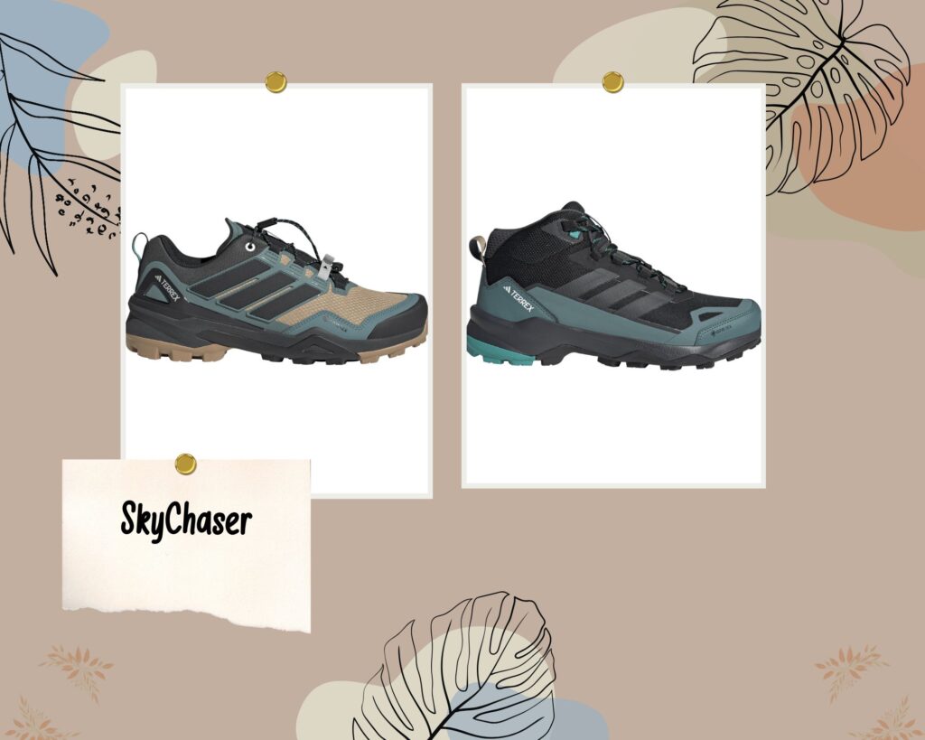 SkyChaserice odlikuju performanse i udobnost, bilo da je riječ o planinarskim turama ili lakšem penjanju. Gornji dio izrađen je od izdržljivog materijala otpornog na susrete s kamenjem i korijenjem. Gore-Tex vodootporna i prozračna membrana pomaže zaštititi od vremenskih nepogoda. U srednjem dijelu potplata nalazi se izuzetno lagana Lightstrike pjena koja osigurava agilnost, amortizaciju i udobnost na svakom koraku. Za dodatnu udobnost imaju Ortholite unutarnji uložak. Continental Rubber potplat osigurava dobro prianjanje na različitim podlogama, kako u suhim tako i u vlažnim uvjetima. Stability Plate u potplatu omogućuje dodatnu stabilnost u srednjem dijelu stopala. Za lakše obuvanje i prilagođavanje cipele su opremljene vezicama za brzo vezanje.